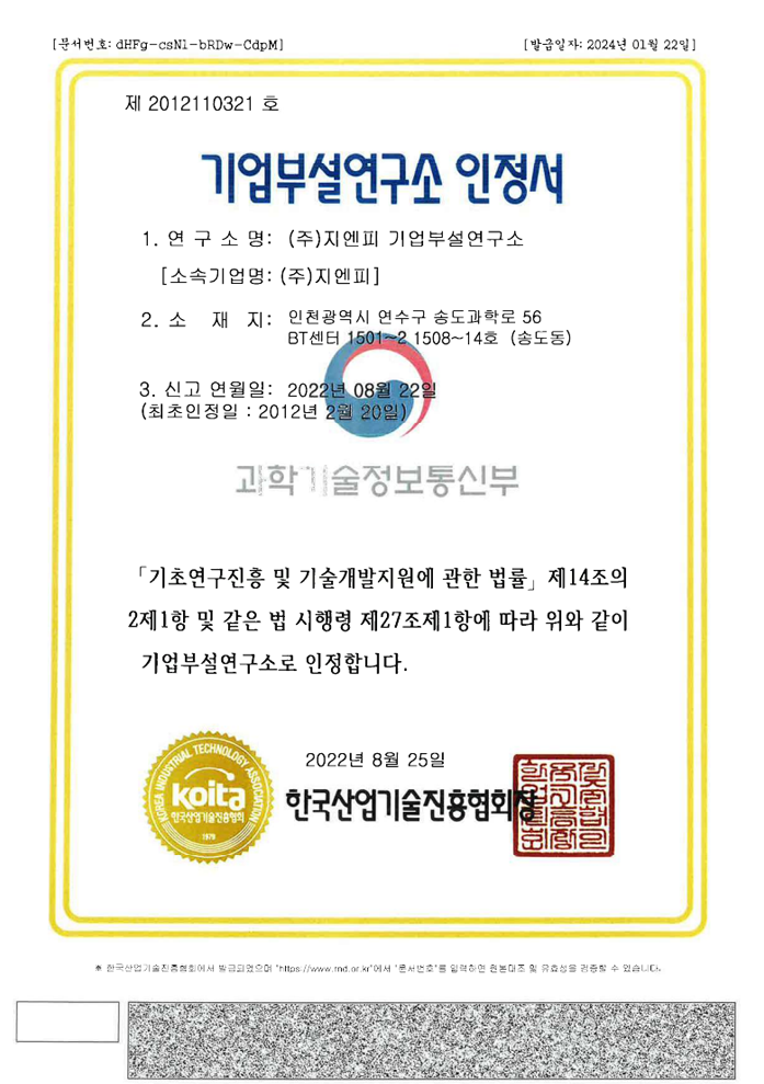 기업부설연구소인정서
